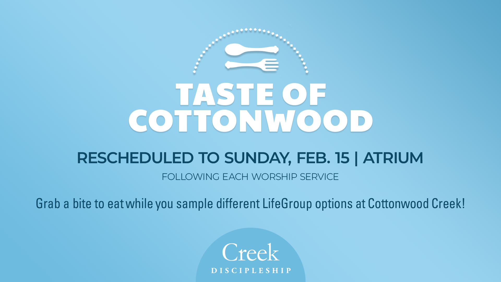 This is an amazing event that provides opportunity to get plugged in at Cottonwood Creek Church! On two upcoming Sundays, we’ll have an opportunity for you to connect with a LifeGroup that fits your needs in this stage of life. We can’t wait to meet you!